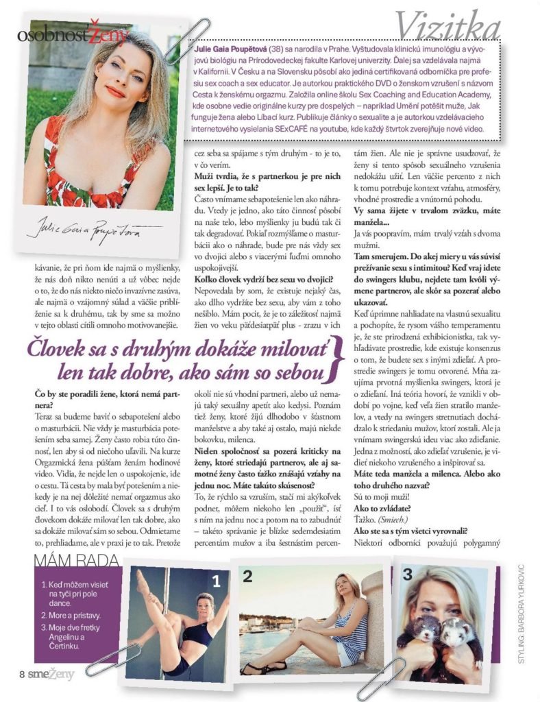 Ve velikém květnovém rozhovoru s první českou sex koučkou Julií Gaiou Poupětovou se dovíte, jak tráví květnové dny, jaké jsou její tři nejdůležitější tipy pro lepší sex a jak nejrychleji zhubnout do plavek.